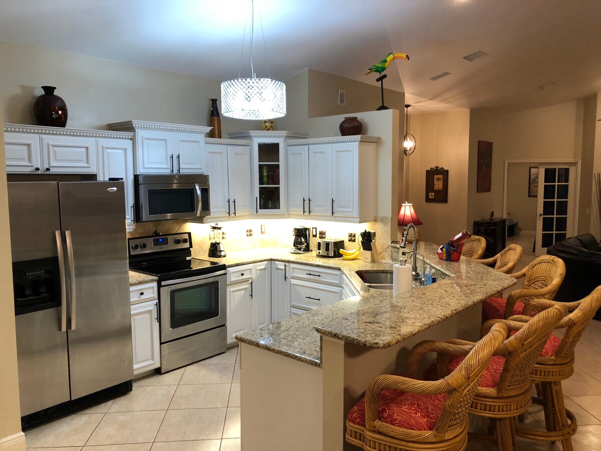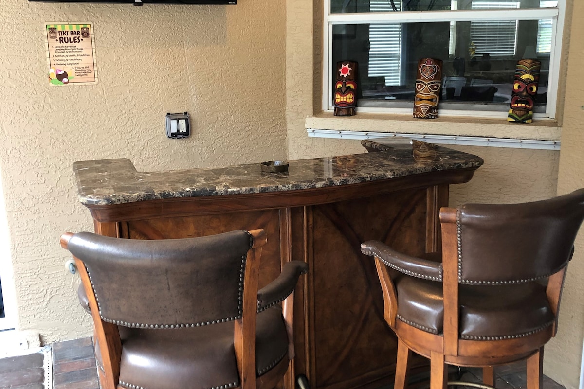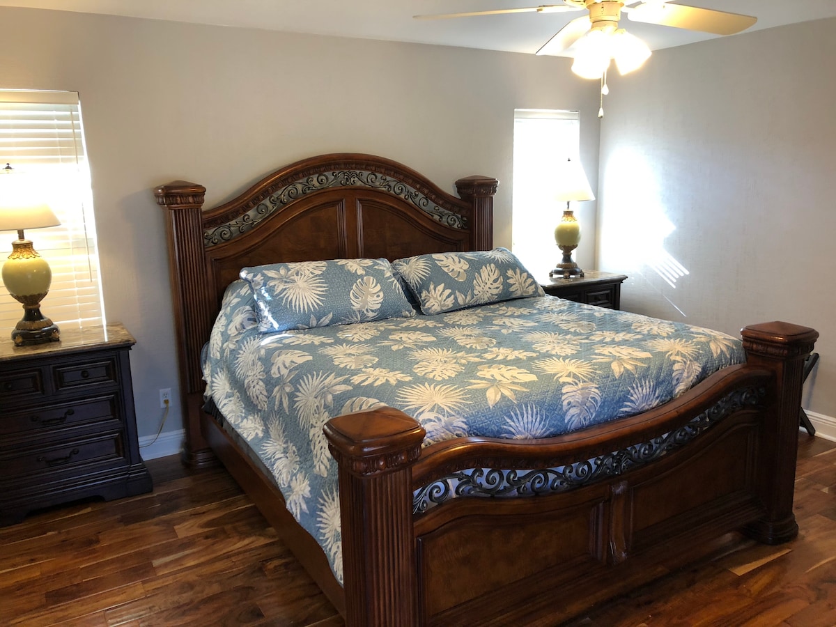 Amazing vacation house 10 minutes to one of the top 2 beaches in the U.S.! Four Bedrooms, huge screened in resort style pool area with Tiki Bar! Shopping and dining 5 minutes down the road. Salt water pool is easy on your hair & skin! Massage chair, fire pit, and grill. Come visit our very special Tiki Paradise! BTC discounts!